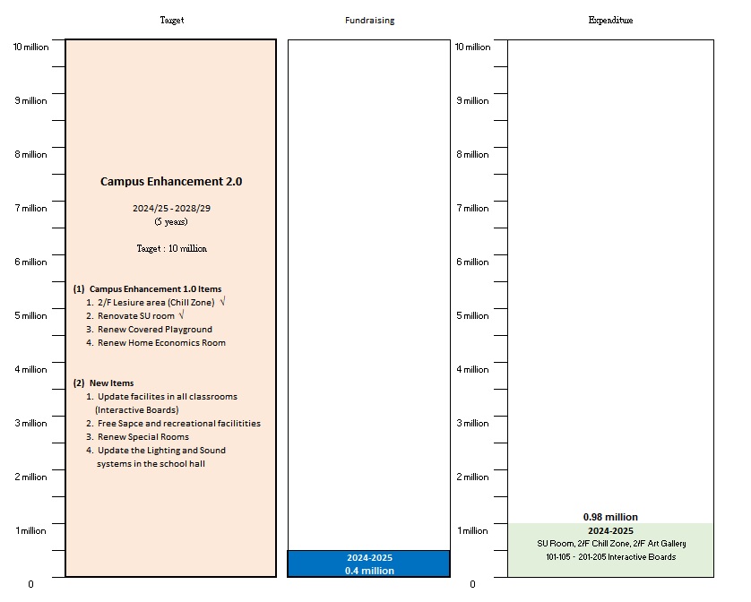 We launched the Campus Enhancement Project Plan in the 2014/2015 academic year, which will last for 10 years and be carried out in two phases. The aim is to prepare the hardware for teaching and learning in the 21st century. For more details, please refer to the overview table below.
